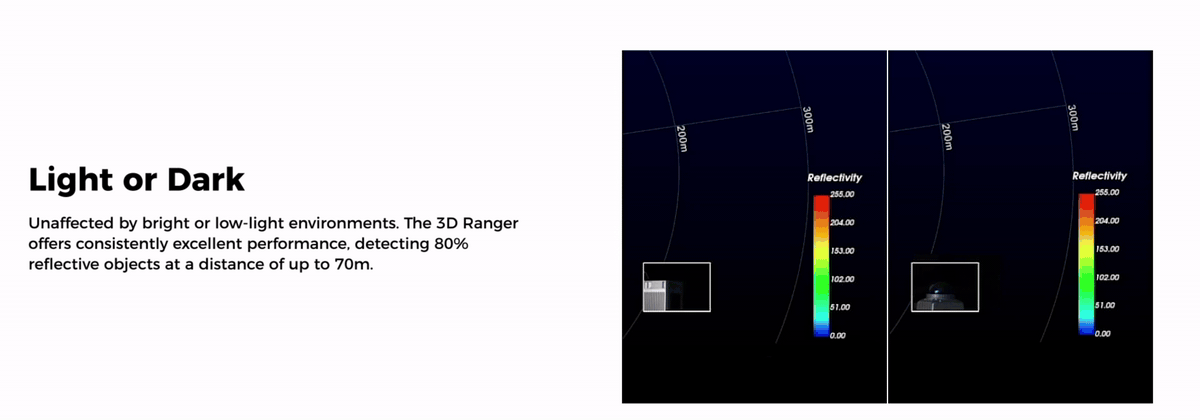 Compared to many competing 3D Lidar solutions for industrial AGVs, the PCOPCO 3D Ranger balances long-range detection, wide field of view and high angular resolution in a compact form factor. It maintains consistent accuracy at 10% reflectivity, a common pain point for lower-tier sensors in low-contrast industrial environments. It also offers straightforward integration with common AGV control systems without complex calibration.